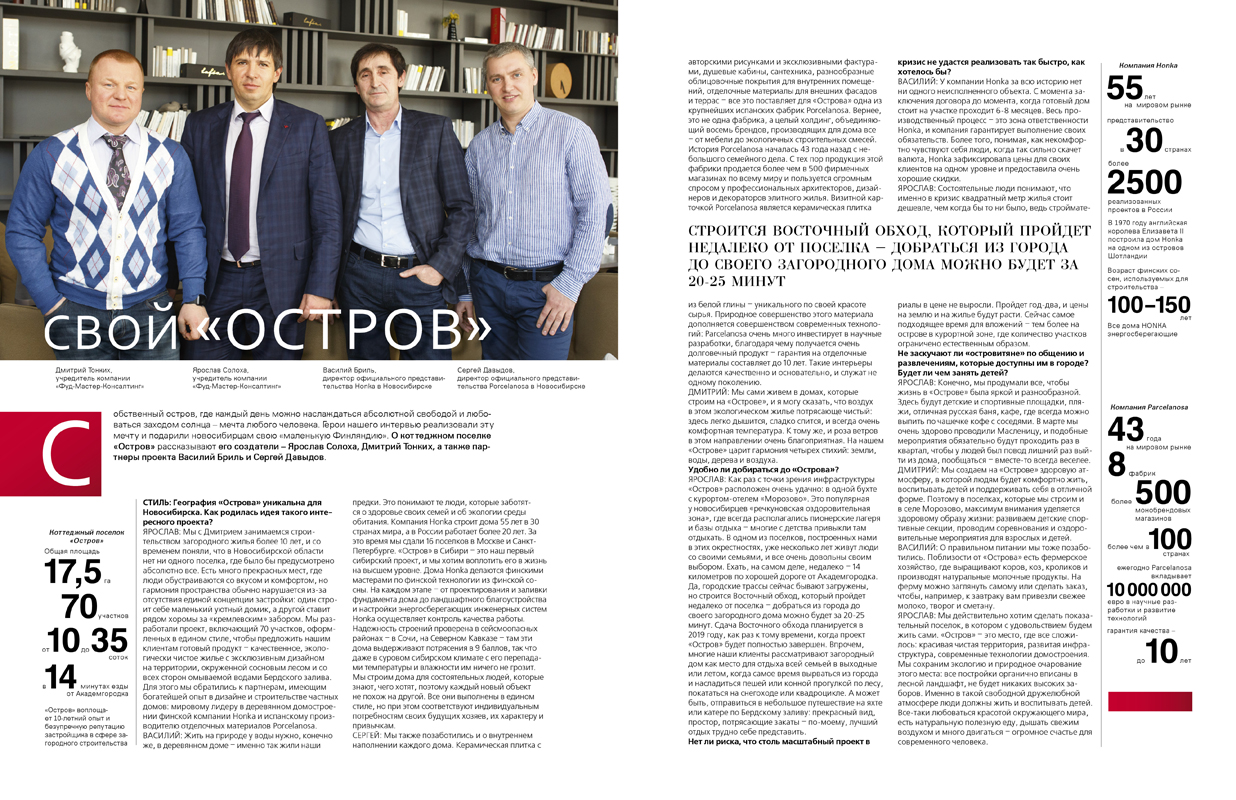 Cобственный остров, где каждый день можно наслаждаться абсолютной свободой и любоваться заходом солнца – мечта любого человека. Герои нашего интервью реализовали эту мечту и подарили новосибирцам свою «маленькую Финляндию». О коттеджном поселке «Остров» рассказывают его создатели – Ярослав Солоха, Дмитрий Тонких, Василий Бриль и Сергей Давыдов.